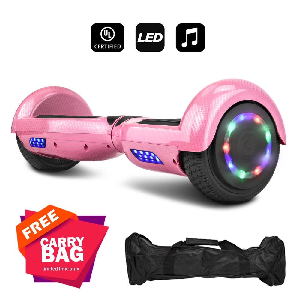 hoverboard, Carbon Fiber Design Hoverboard Electric Hoover Board Smart Self Balancing Scooter with Built-in Speaker- UL2272 Certified (Pink)