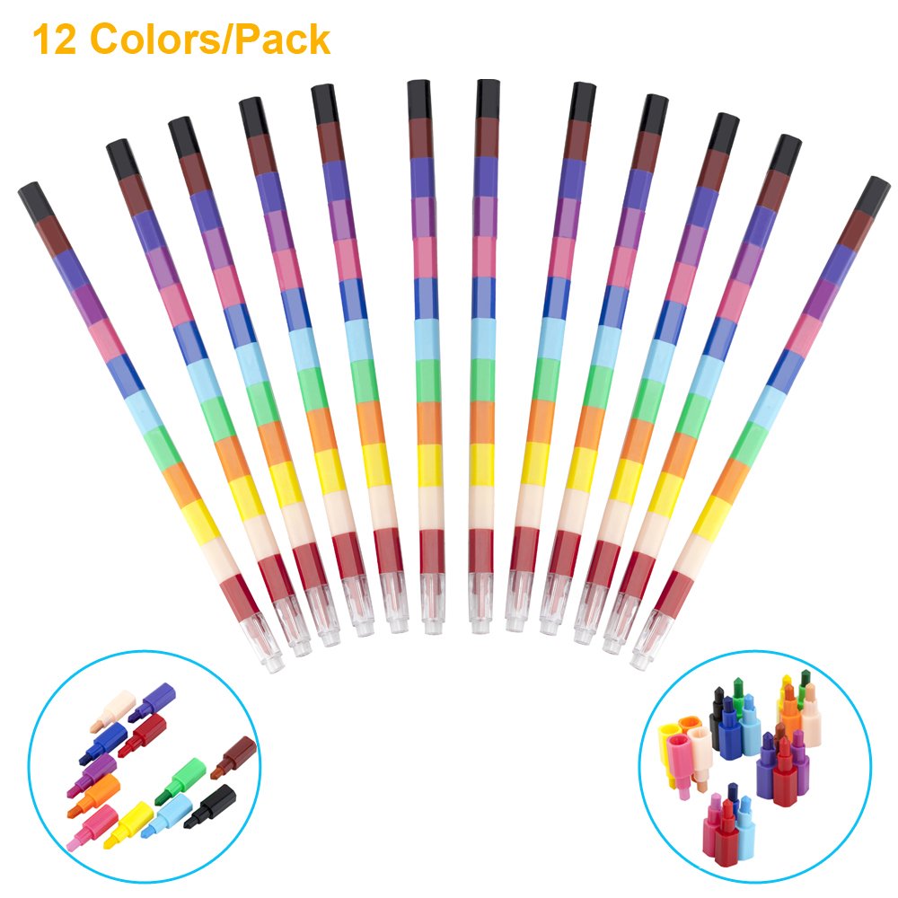IDEEMO Toddlers Crayons, 12 Pcs Paint Crayons Sticks Stackable Toys for Kids, Toddlers, Child, Safety Non-Toxic Washable Stacking Buildable